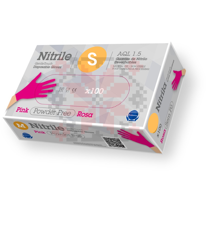 Guantes Desechables Nitrilo Rubberex G.Touch LG Rosa (3,5 Gr)