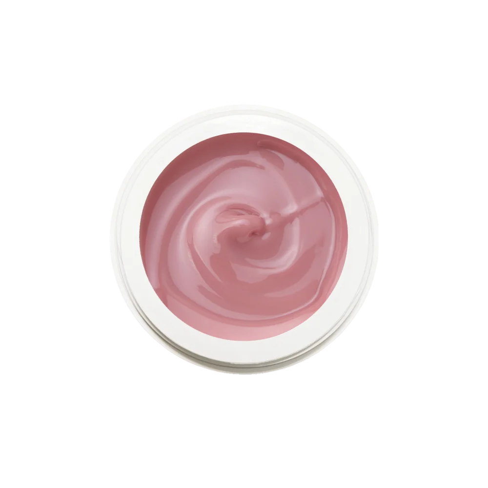 El Builder Gel COVER es un gel estructural trifásico (tres fases) con un tono de camuflaje neutro y empolvado (color piel/rosa claro).