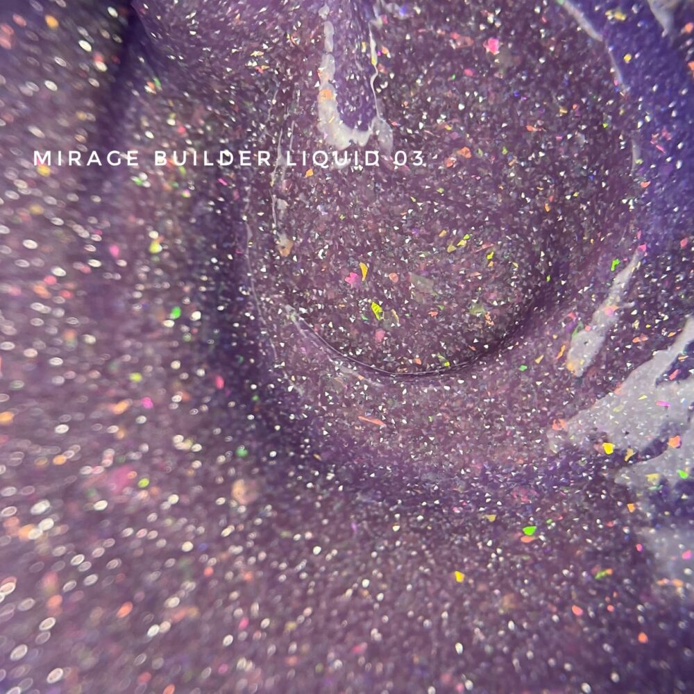 El BUILDER LIQUID MIRAGE es una simbiosis de gel constructor y base de camuflaje que contiene partículas reflectantes que crean un efecto de reflejo de luz.