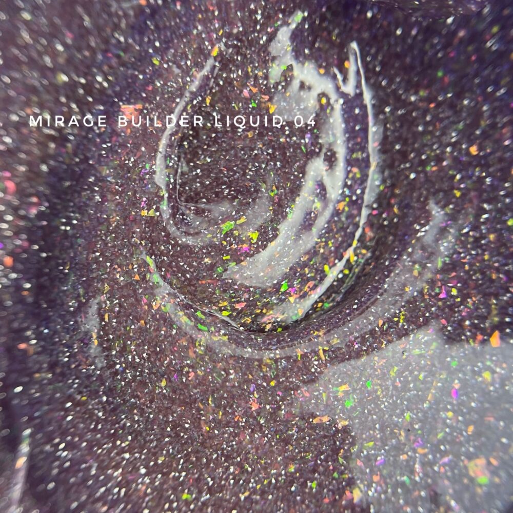 El BUILDER LIQUID MIRAGE es una simbiosis de gel constructor y base de camuflaje que contiene partículas reflectantes que crean un efecto de reflejo de luz.